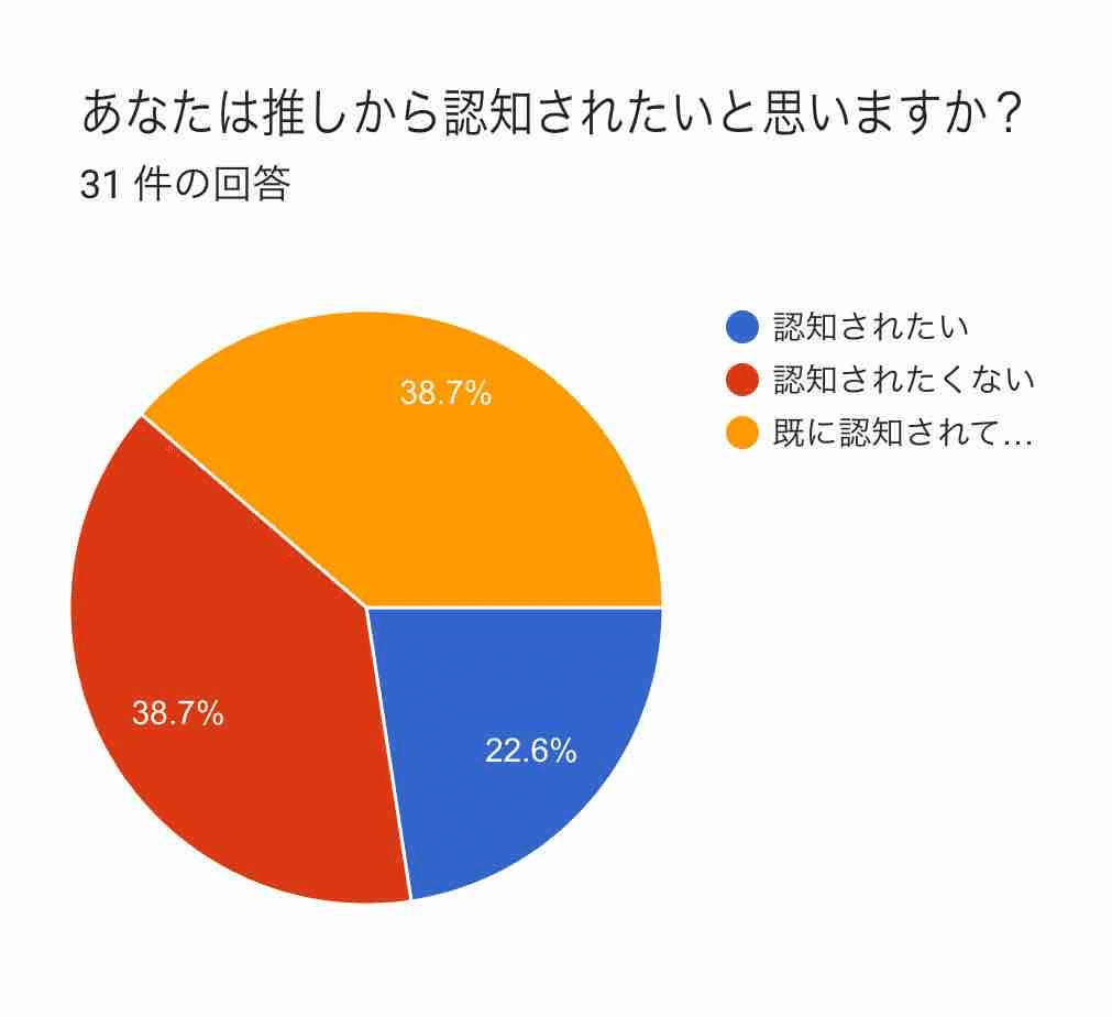 逆に、絶対に認知されたくないという人は、自己肯定感が低く、自分という塵芥が推しの人生に介在することに怯えている。自分が不完全であるがゆえに、完璧な存在の推しの価値観に僅かでも影響を及ぼしたくない。つまり、推しの幸せを最優先に考えている人物。