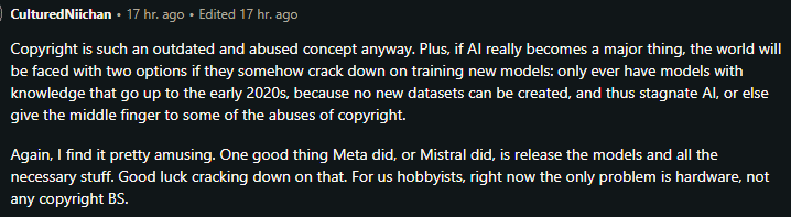 words to live byすぎる。著作権はオワコン。今後の数十年はそれを人々がゆっくりと呑み込んでいく過程になるだろう。すでに嚥下済みの人間からするとかったるいことこの上ないが。