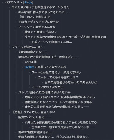 バケカン感想スレごっこみたいなことしてた頃の記事結構好き。わちゃわちゃしてる。あと後から読み返した時普通に進行度の参考になる。