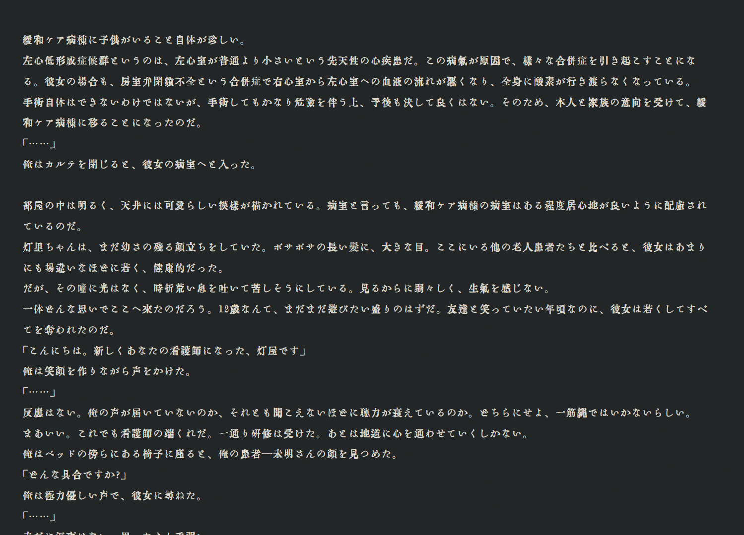 ……。…………。うんざりだ。うんざりだうんざりだうんざりだ。ロリィタノイロォゼといい、どいつもこいつも。不倫だろうと盗作だろうと、境遇も過程もわからない以上何も言えないしわかんないよ。ただあなたがいなくなるのは身が引き裂かれそうなほど寂しい。