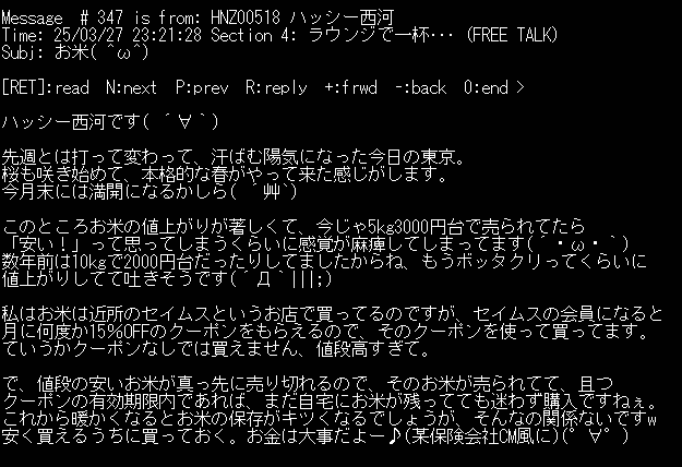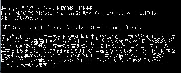 - 完璧に最高。インターネットの楽園がここにあります。いや、正確にはインターネットですらないんだけど。パソコン通信だから。